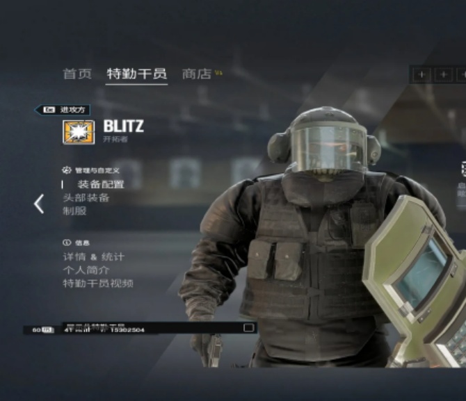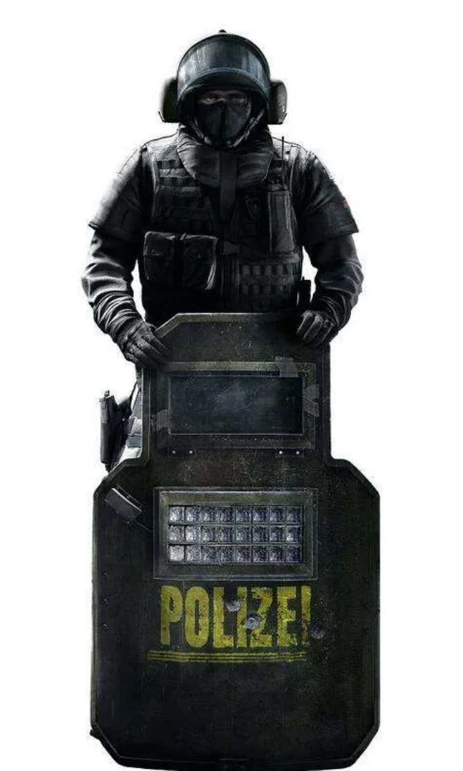 Blitz,原名Elias Kötz,隶属德国GSG9,在背景故事中,以乐观性格与战术灵活性著称。其标志装备是“G52战术闪光护盾”,能够发射强光致盲敌人,冷却时间短且可连续使用。游戏中的定位为进攻方突破手,通过闪光干扰防守方的视野与战术,为团队创造攻击契机。