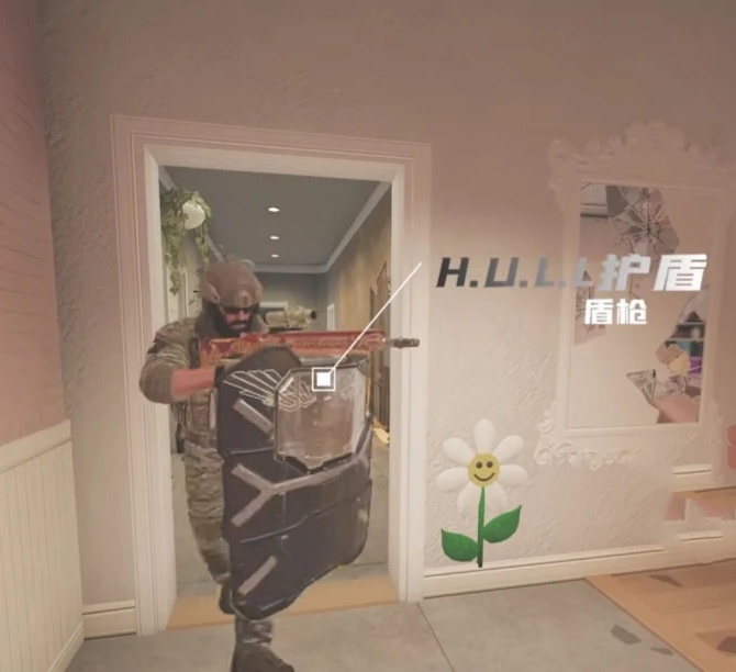 通过挂绳架盾仅露头部,可以配合SR-25封锁点内入口,封锁防守方的通道。