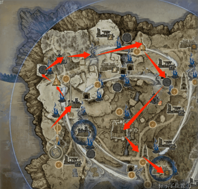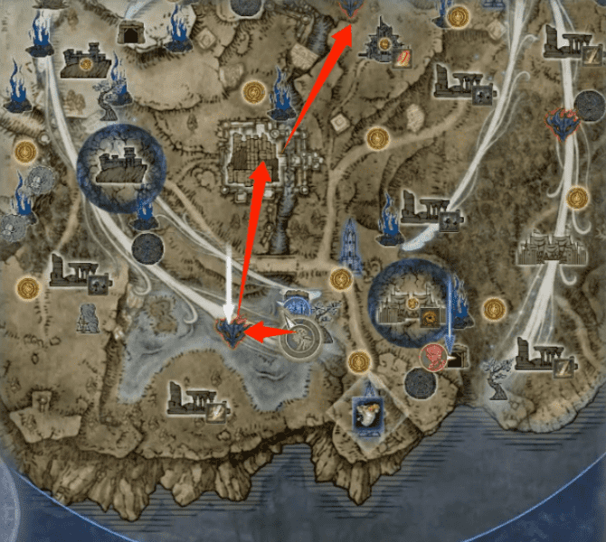 刷完营地之后寻找最近的赐福点升级,一般赐福点附近也有小怪可以顺手清了。二级寻找最近的要塞或教堂,这俩都会爆一把石剑钥匙,要塞的房间必出2把法杖,教堂必出2印记。
