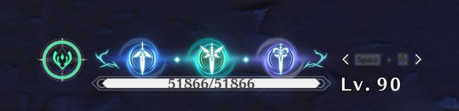 先从小卡开始,请看下图小卡的共鸣回路(就是血条上面的能量槽),上面是不是有三把剑(准确点说是剑影)的图标?