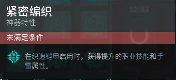 但是!神器模组“紧密编织”在我们拥有织造铠甲的时候,会给我们的职业和手雷加20的属性!!!完全契合我们之前说的职业属性的提高和手雷属性不足的情况。