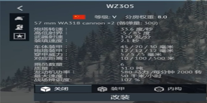 WZ305的游戏定位是五级房中系的二线防空核心,并且可以向前线提供一定的火力支援。