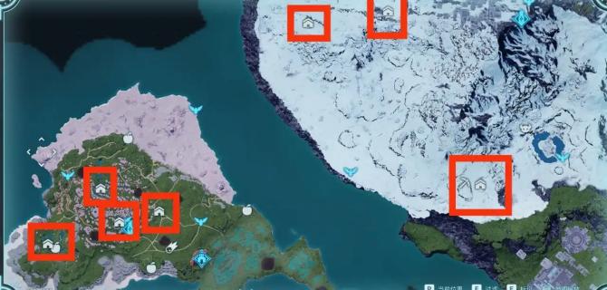 ⑥信赖度:新版本刚加的,与帕鲁互动可以增加,打据点开宝箱可以大概率可以获得羁绊宝桃,使用后可以大幅提升信赖度。樱花岛和雪山据点位置如下。