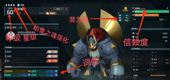 帕鲁需要养成的部分分别是: