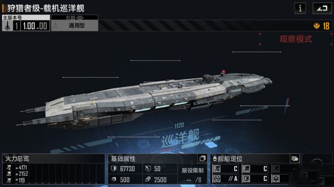 重型载机巡洋舰:搭载4架护航艇,策略技能“重点出击”可强制调整护航艇攻击优先级,专门攻击敌方航母或主力舰。