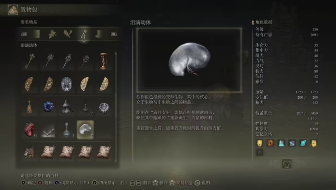 洗点随心:打完满月女王,能拿“泪滴幼体”重置点数,一周目至少有9个,就算加错了也能改,放心大胆试!常用流派也给你标好:法爷主加智力,出血流主堆感应,跳劈流重点加力气+灵巧,照着来准没错。