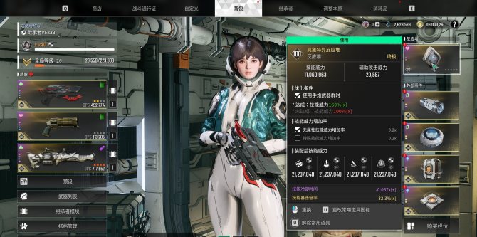 强化塞丽娜:得到塞丽娜后,就得好好强化她,同时把全局等级提升到18,为之后爬塔强化枪械做准备。塞丽娜的用法很独特,在空中或者跳起来的时候开4技能,枪械伤害能提升3倍,而且还会变成范围伤害,输出直接拉满。