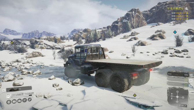 将两辆车都复原到车库后,将泰嘉的轮胎换成全地形,并安装地震模块,完成合约-泰加石油的地理探索、地平线之外,前往采石场后沿主路前往奇姆讷古尔斯科,去地图最北方的山上寻找TUZ 420 "Tatarin" ,至此准备工作结束。以鞑靼开图收集,以亚速6和泰嘉拉货做任务(合约相当于主线,任务相当于支线),千万记得要想富先修路!