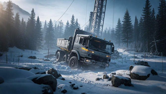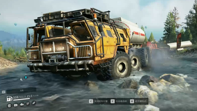 新剧情游戏开局,跟随教程至前往车库,沿路会看到一辆燃油拖车,用绞盘(即卷扬机)拉到车库旁拖车商店和两格拖车一并卖掉。进入车库,将附赠的两台DLC卡车以及雪佛兰全部卖掉,切换全球地图到泰美尔购买亚速6,并在附加装置中购买改装维护框架,从淹没之地车库出发前往西南方山间小溪处的Tayga 6436,触发SOS任务并进行维修,使用复原返回车库后再次前往彻底维修。