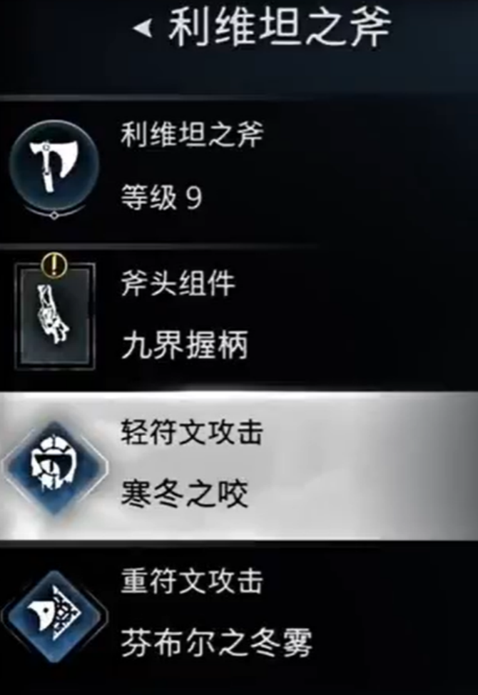 武器符文:斧子“利维坦咆哮”、双刀“哈迪斯的报复”、长矛“胡卓冲锋”。