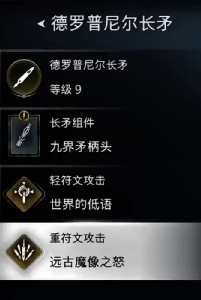 符文:斧子“赫尔海姆迷雾”、双刀“混沌飓风”、长矛“远古魔像之怒”。