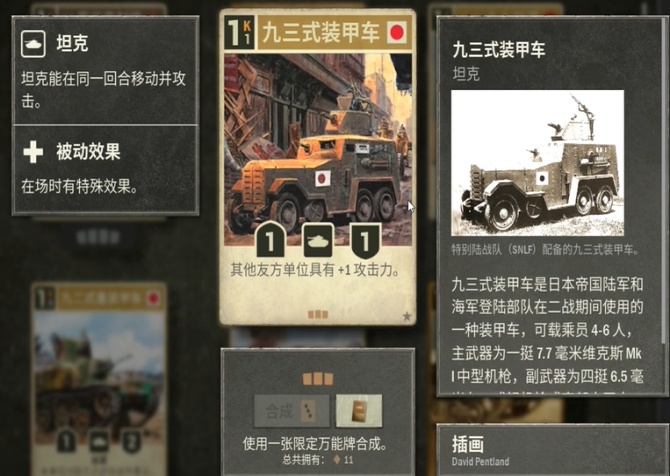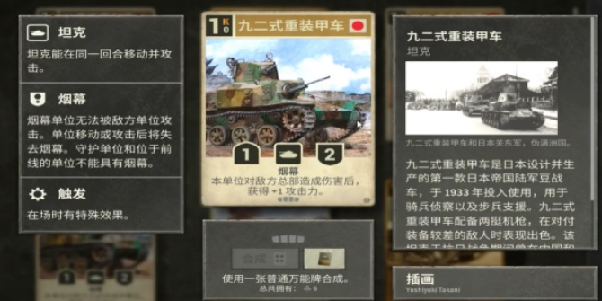 九二式重装甲车,能让你在第二回合就拥有一台2攻二防的坦克。