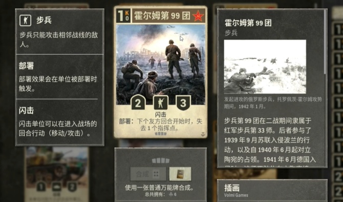 霍尔姆第99团,虽然会让下一回合失去一个指挥点数,但能在第一回合用一费部署一个二攻三防的步兵卡,面对其他基本上只有一攻一防的前期步兵单位几乎是碾压,快速在前线铺场.