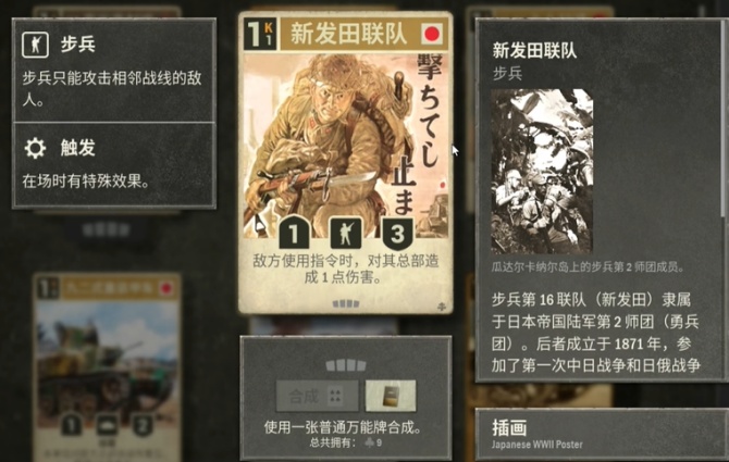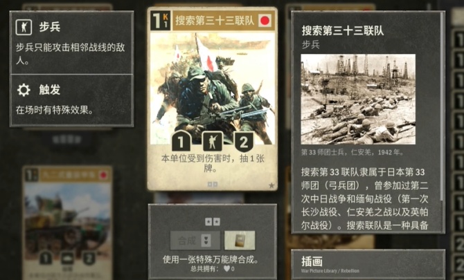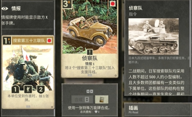 侦察队,三费给支援阵线补充两张搜索第三十三联队,并且随机给对手手中一张手牌的信息。