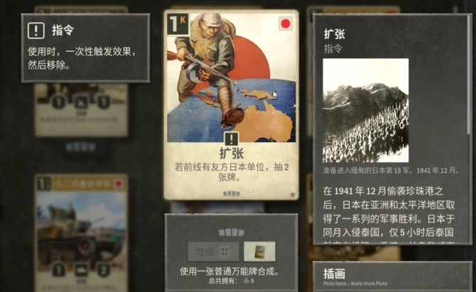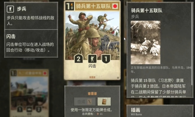 骑兵第十五联队,一费的同时拥有“闪击”特性和二攻一防,用来第一回合抢占前线很不错