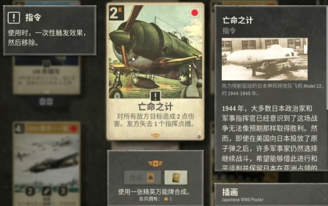 搜索第三十三联队,一个很好的过牌卡,一费拥有一攻二防,基础数值还算可以的同时,可以通过受伤过掉卡牌。