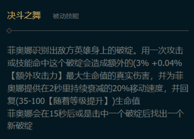 被动技能,随机刷新对方身上的破绽,打破绽造成真伤,加移速回血。