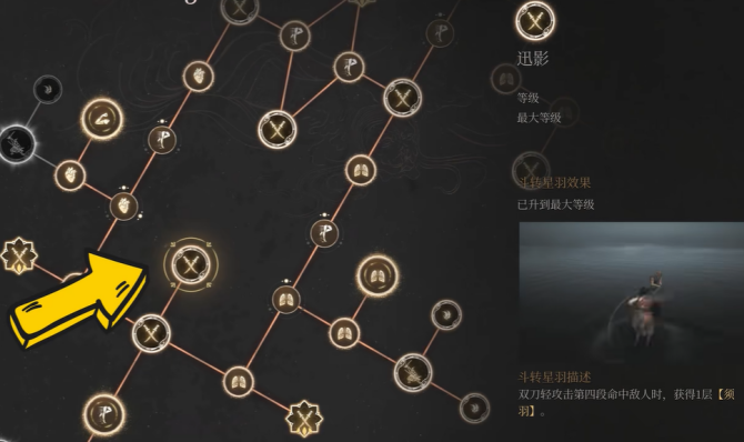 点“迅影”双刀第四段轻击命中会获得一层须羽。