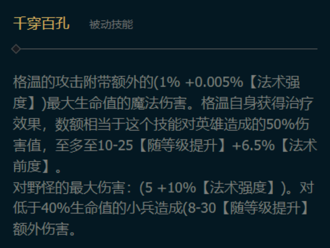 被动技能,造成额外的百分百伤害,同时治疗自己。