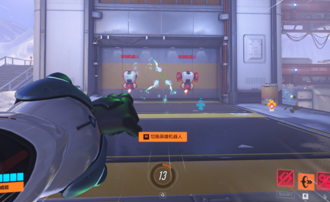 右键是发射能量球,需要锁定,锁定队友发射治疗球可以瞬间恢复血量+持续恢复血量(小锤发血包),锁定敌人会发射一发伤害球,时间结束会自动发射,可以跳起来锁定视野更广。