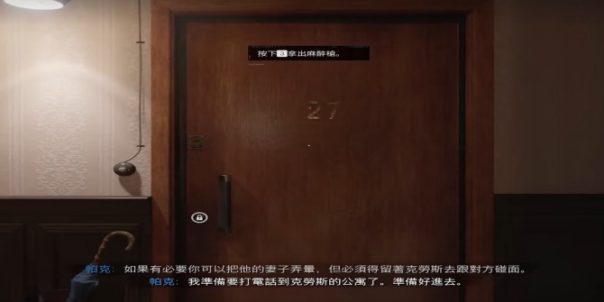 首先,我们要从二楼阳台进入克劳德家里,这里要优先监听克劳德妻子艾达的对话。这里有两个选择,可以用麻醉枪迷晕克劳德的妻子艾达,但是就没法达成成就。如果要达成“不迷晕艾达”成就,就不要用麻醉枪,可以利用家具遮挡视线,趁家人移动时快速通过走廊。