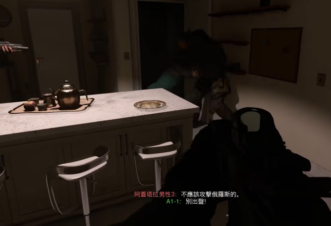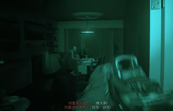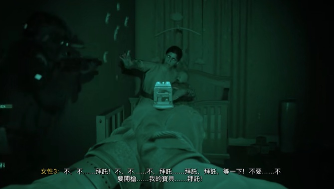 在进入四楼后,注意不要击杀婴儿和女性,靠近抱婴儿的女性后,蹲下击杀床底敌人。