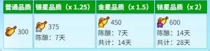 蜂蜜酒(酿造产物):酿造需要10个小时,虞美人蜂蜜和玫瑰仙子蜂蜜的售价比蜜蜂酒的售价贵,这两种蜂蜜更适合直接出售获利而不是用来酿造蜜蜂酒。