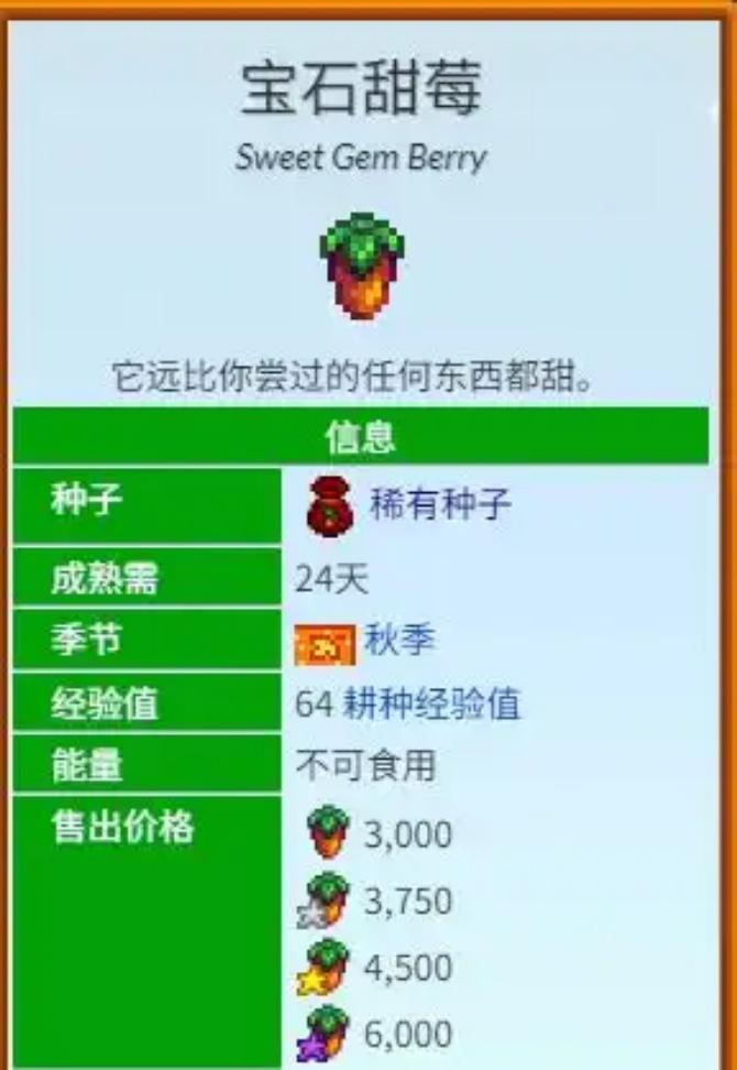 偏向后期的一个流派,主要就是通过种植稀有种子,收获成品宝石甜莓售卖来赚钱。跟酿酒流是有一点像的,唯一区别就是不用对产物进行加工,所以省去了几道麻烦的工序,但也因此肯定没有酿酒流赚钱。