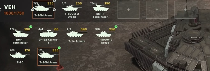 其次就是升级了主动防御系统后的t80um主战坦克,在拥有两枚主动防御弹药的情况下,也仅仅需要250的征召分数,能为前线提供迅速及时的装甲支援。