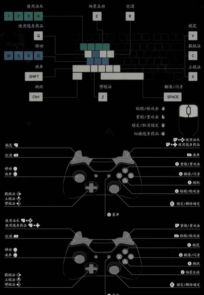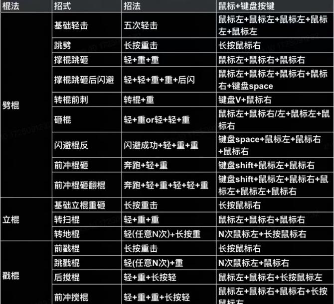 键盘鼠标玩家基本操作:移动依靠WASD键,攻击对应鼠标左键轻棍、右键重棍,闪避是空格键。