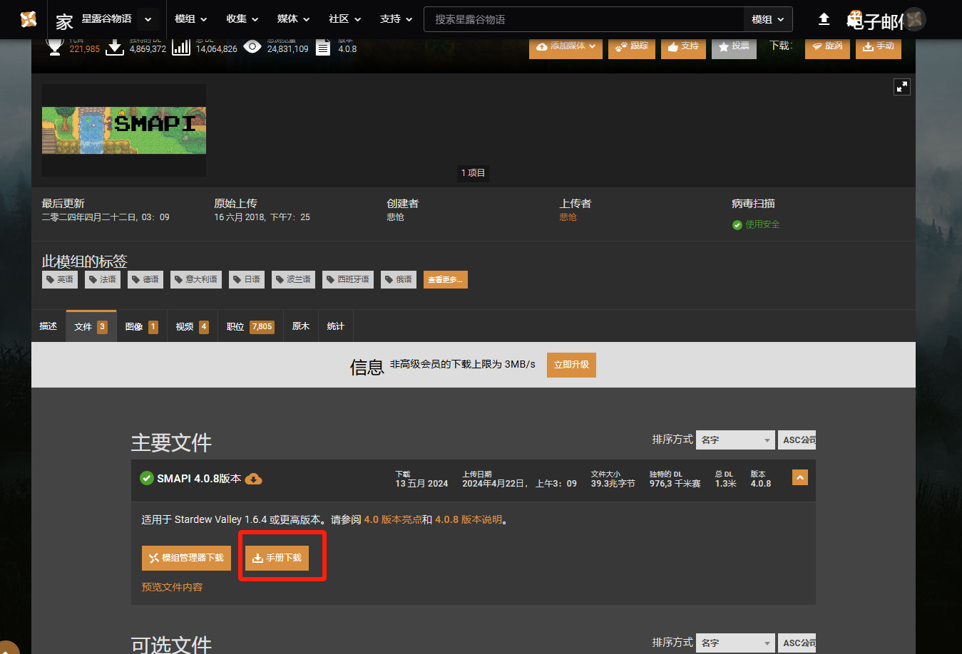 不过安装前,得先给游戏装上 “心脏”——SMAPI 基站(下载地址:https://www.nexusmods.com/stardewvalley/mods/2400)。