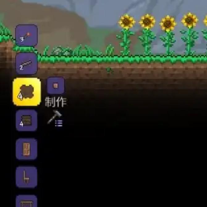 屏幕左侧有个锤子按钮,是做东西的地方,锤子左边是可合成的配方,点一下配方是制作一个,长按是制作多个,直接点锤子可以展示所有可合成的配方(方便)