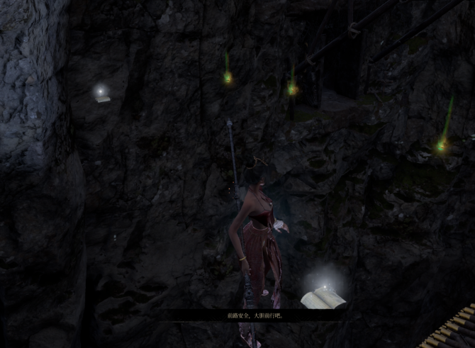 从电梯后面的破洞,或是机关旁边的缺口处都可以跳下。探索可获得先神之言【石·无伤·减伤】。