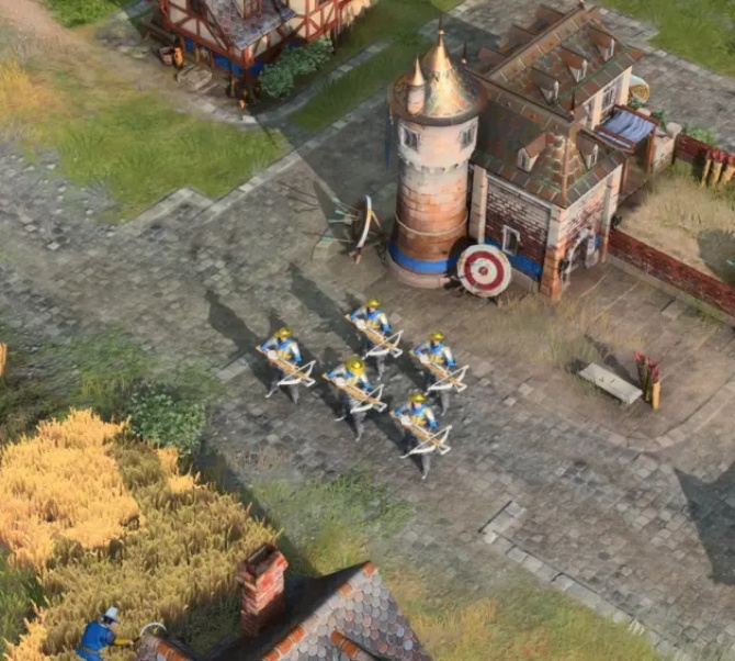 如果对手同样使用法兰西或者已经生产了长矛兵反制的话,就需要建造靶场补充弓兵,并研究铁匠铺的防御科技。