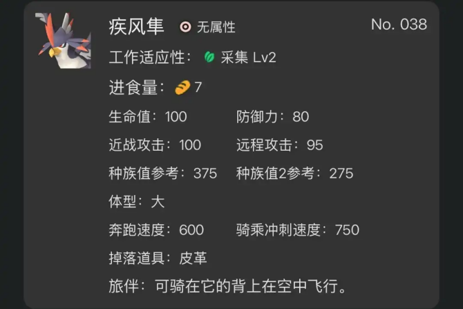 最后是飞行坐骑,要的就是“一飞冲天”!前期没的选,15级解锁的疾风隼是唯一飞行宠,速度一般(奔跑600、冲刺750)但能升星加移速,凑活用。中期过渡用荷鲁斯(38级解锁),奔跑1000、冲刺1400,虽然不能升星加移速,但比疾风隼快不少。