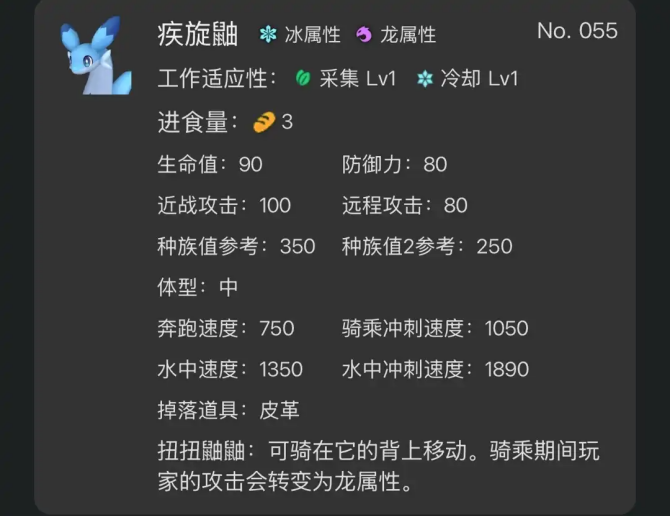 再看水上坐骑,重点看速度和耐不耐造。前期选滑水蛇(10级解锁)或疾旋鼬(13级解锁):疾旋鼬快(水中1350、冲刺1890)但费耐力,滑水蛇慢点儿(水中900、冲刺1440)却不耗耐力,还能靠星级加移速,新手更推荐滑水蛇。