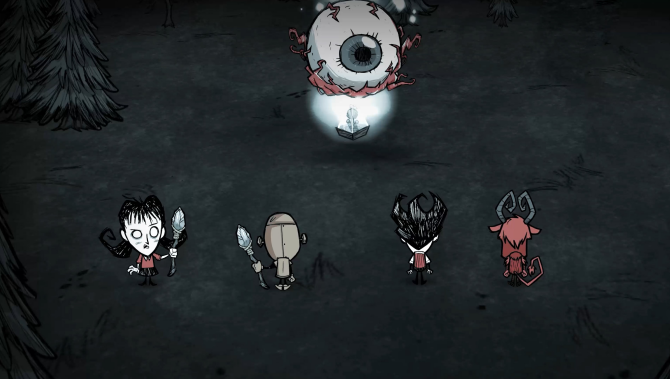 独眼巨鹿:一般秋季开局,到了冬天第10个夜晚,也就是第30天,巨鹿就来啦!来之前能听到嘶吼声,角色也会提示你。听到提示赶紧远离家,到空旷地,备好光源、武器和食物。