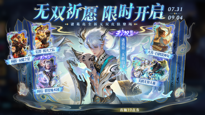 获取方式:10点券就能冲!7月31日起【无双祈愿】活动开启,首抽只要10点券,到9月4日结束。作为无双限定,错过真得等一年,还有高光播报免费领,这波福利不薅简直亏大了!