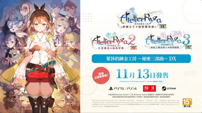 特此,光荣库特摩推出了三部的合集《莱莎的炼金工房 ~秘密三部曲~ DX》,将在2025年11月13日登陆PS5/PS4/NS/NS2/Steam平台,支持中文哦。这次的合集收录了全部的DLC并追加了大量新内容。还支持单独购买DX单作!