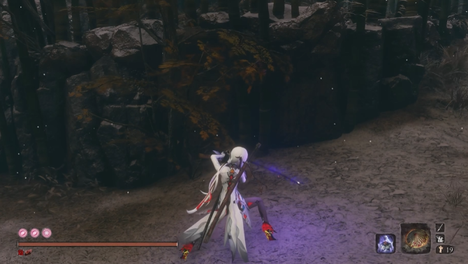 模组信息:她那黑白相间的飘逸长发超吸睛,眼里的红色交叉图案更是又酷又神秘,在苇名的血腥战场里潜行穿梭,帅得让人挪不开眼!