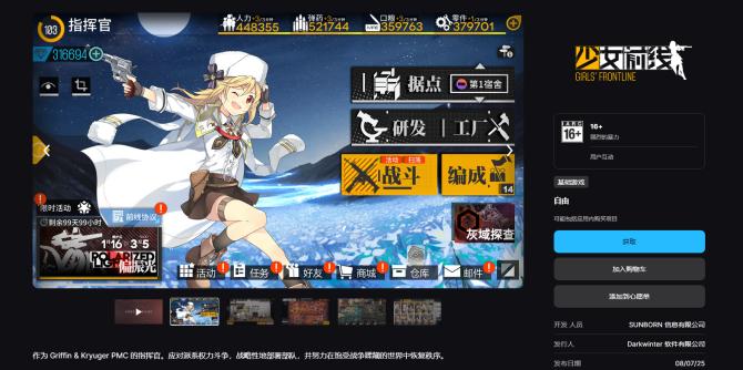 现在《少女前线》已经在今天也就是8月7日正式登录Epic平台啦。此前steam版本已经在6月12日上线,并支持继承原国服数据。
