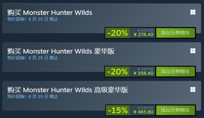 《怪物猎人:荒野》此前刚刚永久降价,近日又开启了新一轮的促销,截止日期是8月25日哦。标准版、豪华版打8折,高级豪华版打85折。不过注意8月12日晚19:50-22:30游戏维护更新,期间无法在线游玩。