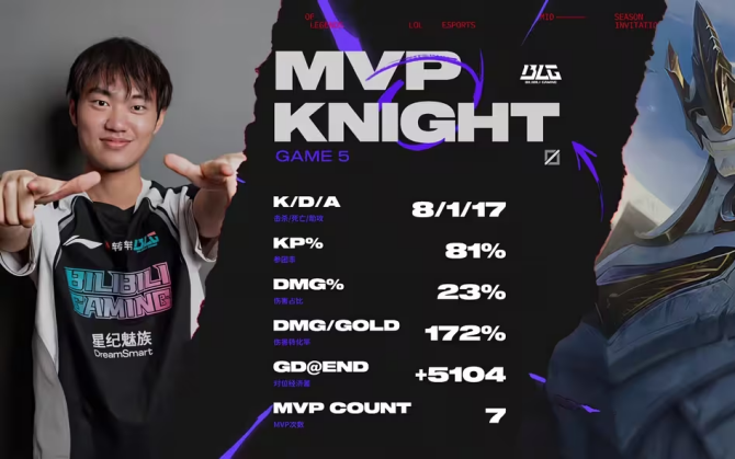 决胜局 Knight 加里奥 3 分钟越塔杀基兰,11 分钟配合 Bin 兰博拿双杀。26 分钟 BLG 杀蕾欧娜控大龙,31 分钟 Elk 寒冰定基兰,加里奥跟上输出,一波推平基地!这波逆袭太提气,BLG 顶住压力守住了荣誉!