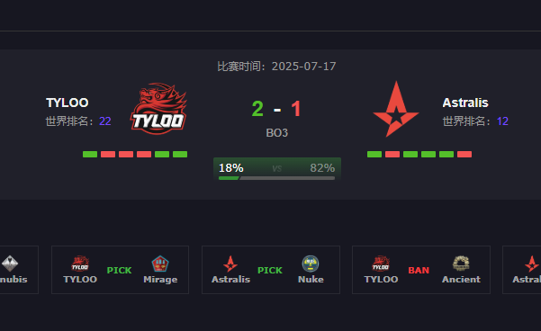 在CS2赛事FISSURE裂变天地S1的国际舞台上,中国战队以硬核表现掀起红色浪潮。7月17日,TYLOO(天禄)在小组赛关键战中以2-1力克丹麦豪门Astralis,以小组头名身份昂首晋级淘汰赛,与同样成功突围的LVG组成“中国双雄”,共同创下中国战队在该项赛事的历史最佳战绩。
