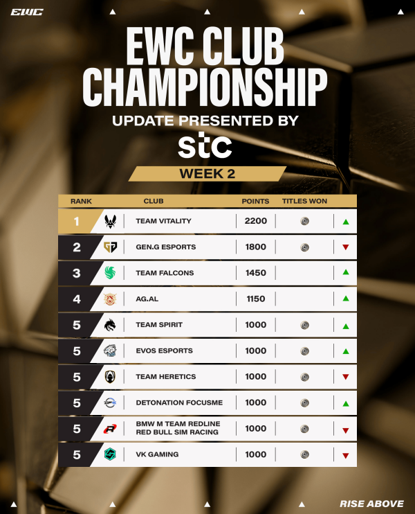 随着EWC电竞世界杯第二周多项赛事的结束,俱乐部积分排行也迎来了大洗牌!目前的俱乐部排行榜上,VIT成为登顶,GEN第二,AG.AL以黑马之姿跃至第四!