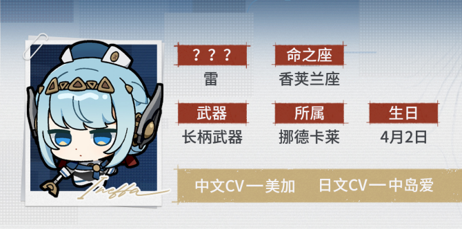 属性技能:雷系长柄战力强。作为雷属性角色,伊涅芙挥舞长柄武器的样子帅到炸。虽然具体技能还没曝光,但光看“轰隆雷鸣波”的外号,就知道她的雷电攻击肯定超带感,命之座香荚兰座的命名更是让人好奇技能特效会不会有花香元素!
