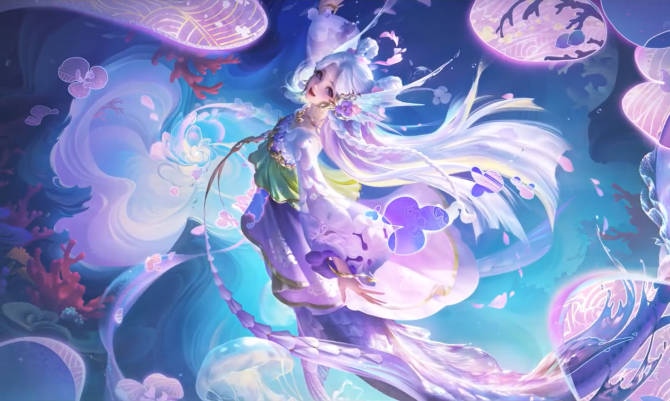 作为朵莉亚的首款国风皮肤,「幻珠鲛人」的设计突破了原皮的海洋风格,粉紫配色与神话主题契合度超高,但是特效精细度有待提高。