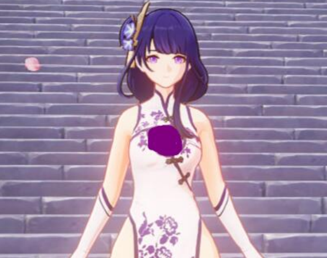 家人们,雷电将军的旗袍MOD也太戳人了吧!紫得像夜空的长发顺顺的,肩头垂着,一侧插着带小花的发簪,温柔得像从古画里走出来的。