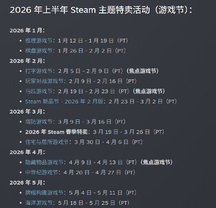steam想赚钱!2026上半年特卖和活动日程已出炉