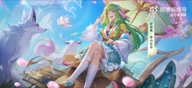 皮肤还原了动漫中涂山容容的标志性特征,技能上也有小狐狸、苦情花等特效。场景展示中融合了山水和涂山产业的元素,音效改编自《梦回还》,将玩家直接拉回动漫中。